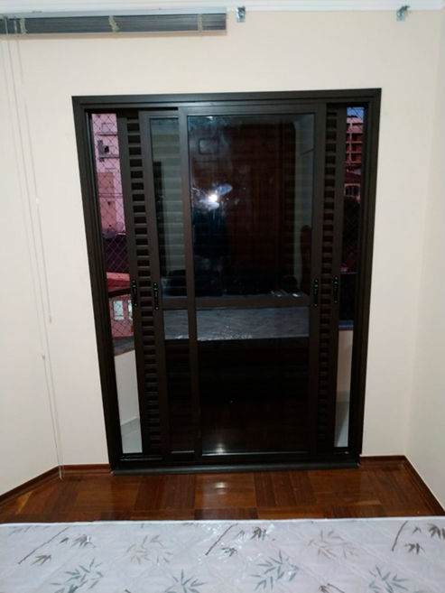 PORTA ACÚSTICA DE CORRER 4 FOLHAS COM 2 VENEZIANA E 2 VIDRO