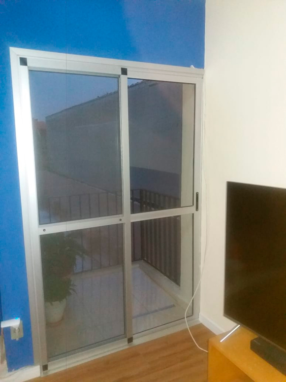 PORTA DE CORRER 3 FOLHAS SENDO 2 VIDRO 1 TELA MOSQUETEIRA